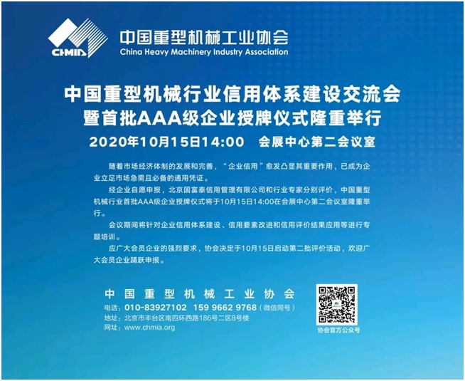 為深入貫徹落實(shí)國務(wù)院《社會信用體系建設(shè)規(guī)劃綱要(2014-2020)》,著力推動(dòng)中國重型機(jī)械行業(yè)信用體系建設(shè),規(guī)范行業(yè)市場秩序,增強(qiáng)企業(yè)信用意識,促進(jìn)行業(yè)持續(xù)和諧健康發(fā)展,由中國重型機(jī)械工業(yè)協(xié)會開展的首批中國重型機(jī)械行業(yè)企業(yè)信用等級評價(jià)工作,經(jīng)行業(yè)專家評審會嚴(yán)格評審于日前揭曉,包括川礦集團(tuán)在內(nèi)的共計(jì)49家企業(yè)榮膺“中國重型機(jī)械行業(yè)首批AAA級信用等級企業(yè)”,近日將進(jìn)行隆重的授牌儀式。