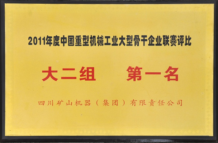 中國重機協(xié)會主持召開的2011年度中國重型機械工業(yè)大型骨干企業(yè)廠際聯(lián)賽評比中,川礦集團榮獲“大二組”第一名。其中“總資產(chǎn)貢獻率”、“成本費用利用率”、“全員勞動生產(chǎn)率”、“工業(yè)經(jīng)濟效益綜合指數(shù)”、“鋼材利用率”、“人均創(chuàng)利稅”、“銷售利潤率”、“單位工資創(chuàng)造工業(yè)增加值”、“工傷事故死亡人數(shù)最低”九個單項指標列聯(lián)賽第一名。