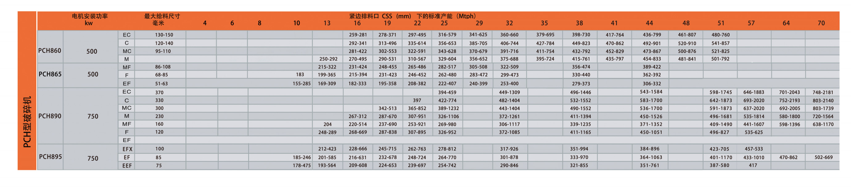 優(yōu)化的破碎腔設(shè)計(jì)可較大程度提高優(yōu)質(zhì)最終產(chǎn)品的產(chǎn)量。PCH/PCS系列具有偏心距和破碎腔型調(diào)整功能,可便利地調(diào)節(jié)破碎機(jī)產(chǎn)量,與上下游設(shè)備協(xié)調(diào)作業(yè)。